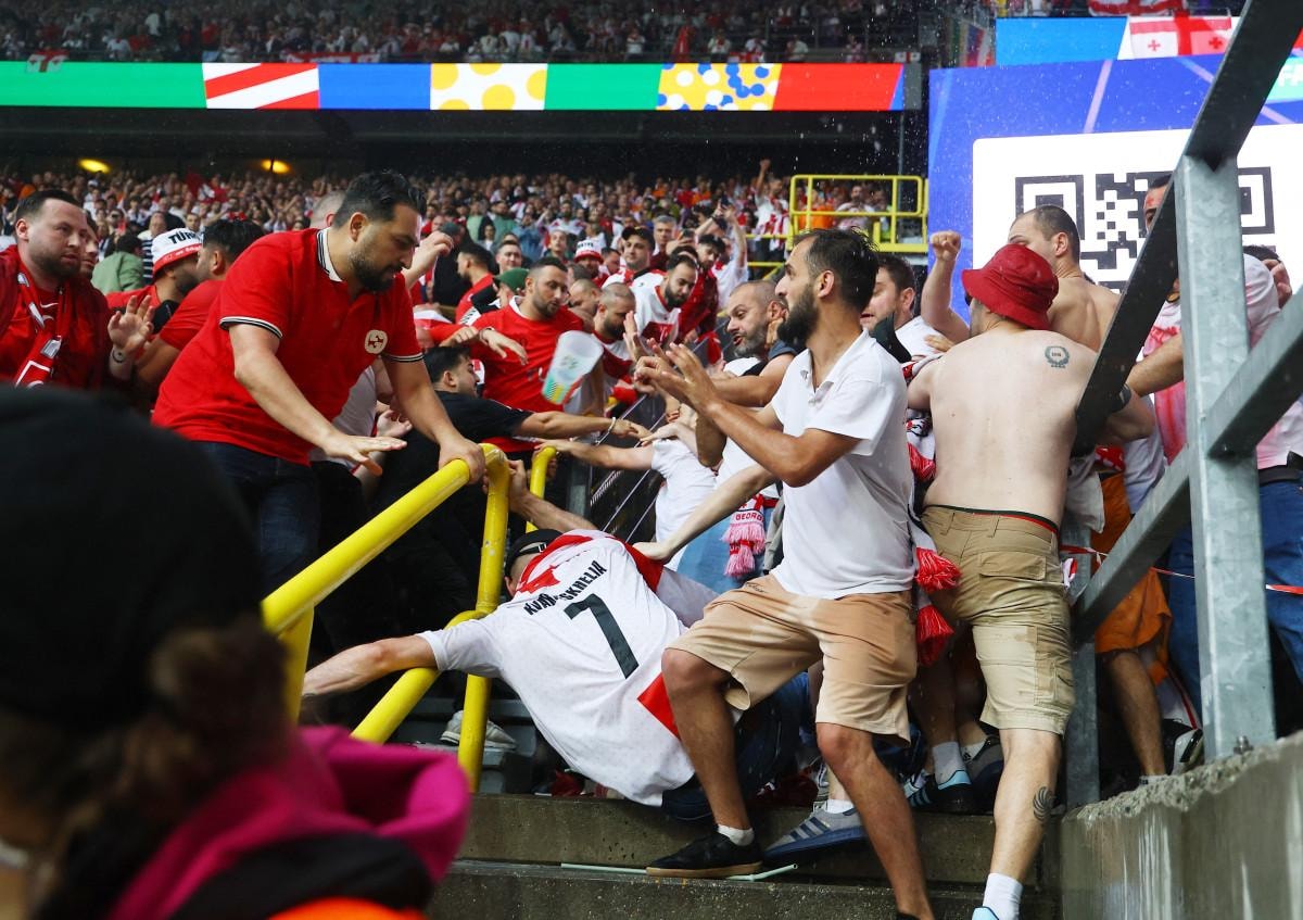 Kale arkasındaki Gürcü taraftarlar ve Türk taraftarlar arasında ciddi bir kavga çıktı.