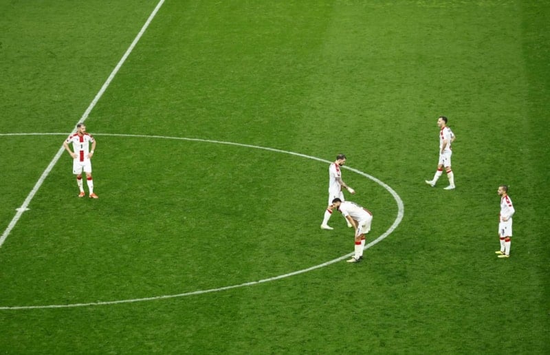 36' Gürcistan çok etkili geldi. Hızlı paslarla gelen Gürcistan'da Otar Kakabadze'nin kafayla indirdiği topta Georges Mikautadze'nin tek vuruşu direğin dibinden auta gitti.