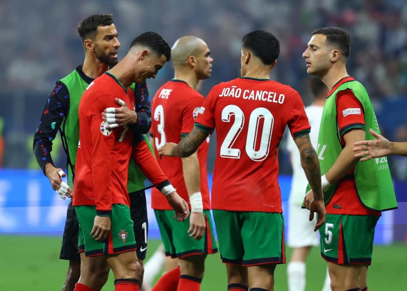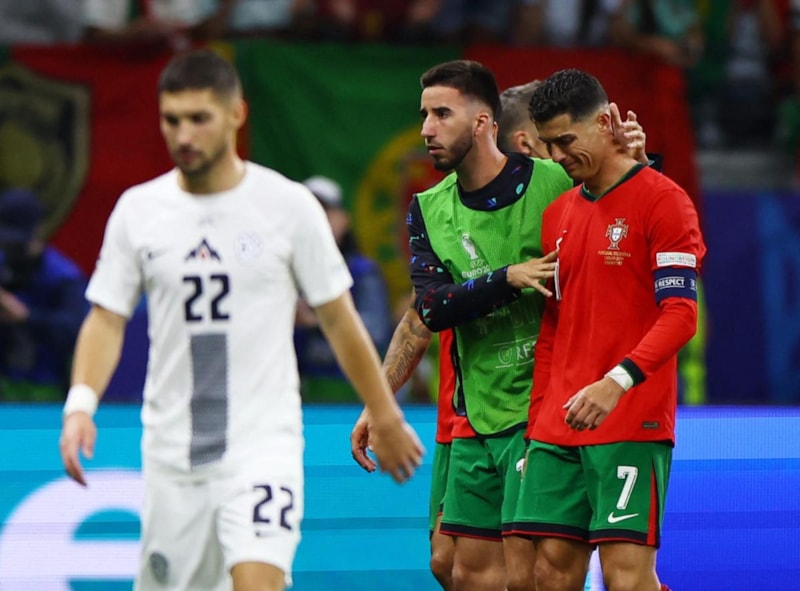 EURO 2024 son 16 turunda Slovenya'ya karşı uzatmalarda Portekiz'in kazandığı penaltıdan yararlanamayan Cristiano Ronaldo, üzüntüsünden ağlarken takım arkadaşları kendisini teselli etti.