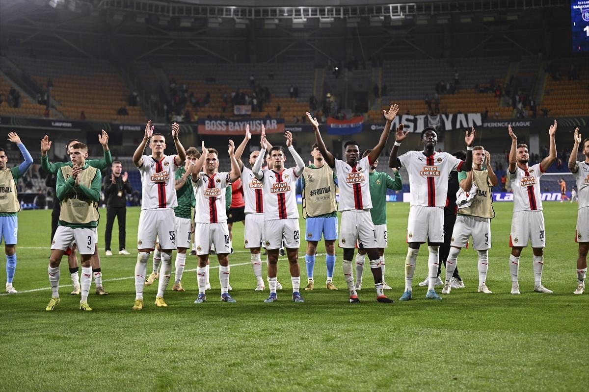 Rapid Wien'e galibiyeti getiren golleri 43 ve 46. dakikalarda Louis Schaub kaydetti.