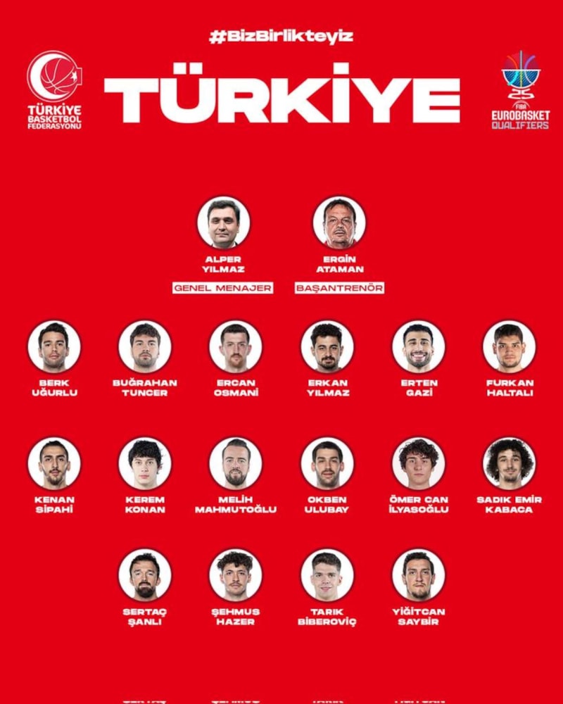 FIBA 2025 Avrupa Basketbol Şampiyonası (EuroBasket 2025) Elemeleri'nde mücadele edecek A Milli Erkek Takımı'nın aday kadrosu belirlendi.