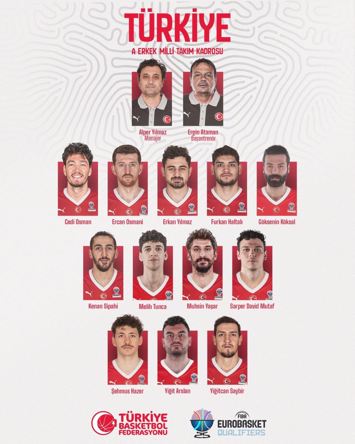 FIBA 2025 Avrupa Basketbol Şampiyonası Elemeleri B Grubu'nun üçüncü karşılaşmasında bu akşam Macaristan'ı konuk edecek A Milli Basketbol Takımı'nda maç kadrosu belli oldu.