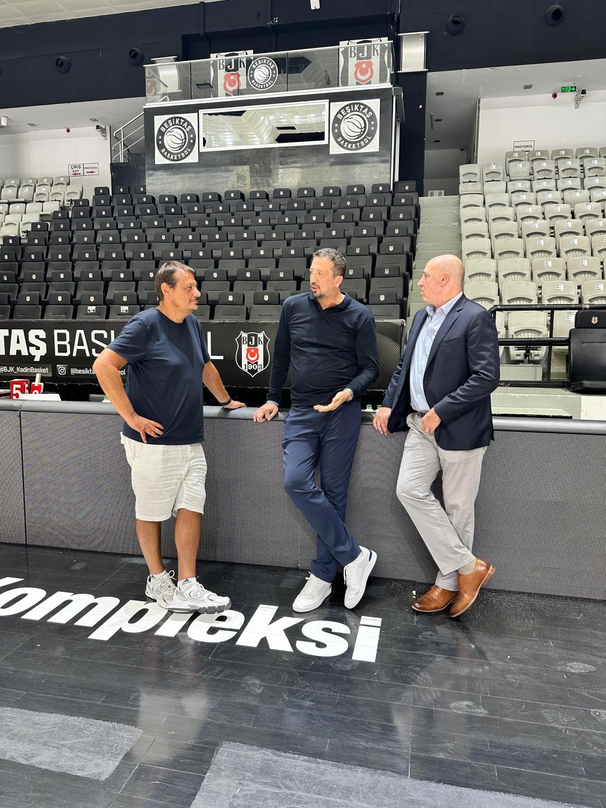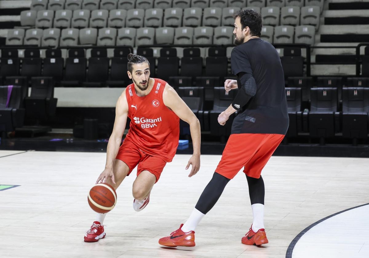 Ay-yıldızlıların antrenmanını, Türkiye Basketbol Federasyonu (TBF) Başkanı Hidayet Türkoğlu ve eski TBF Başkanı Harun Erdenay salonda takip etti.