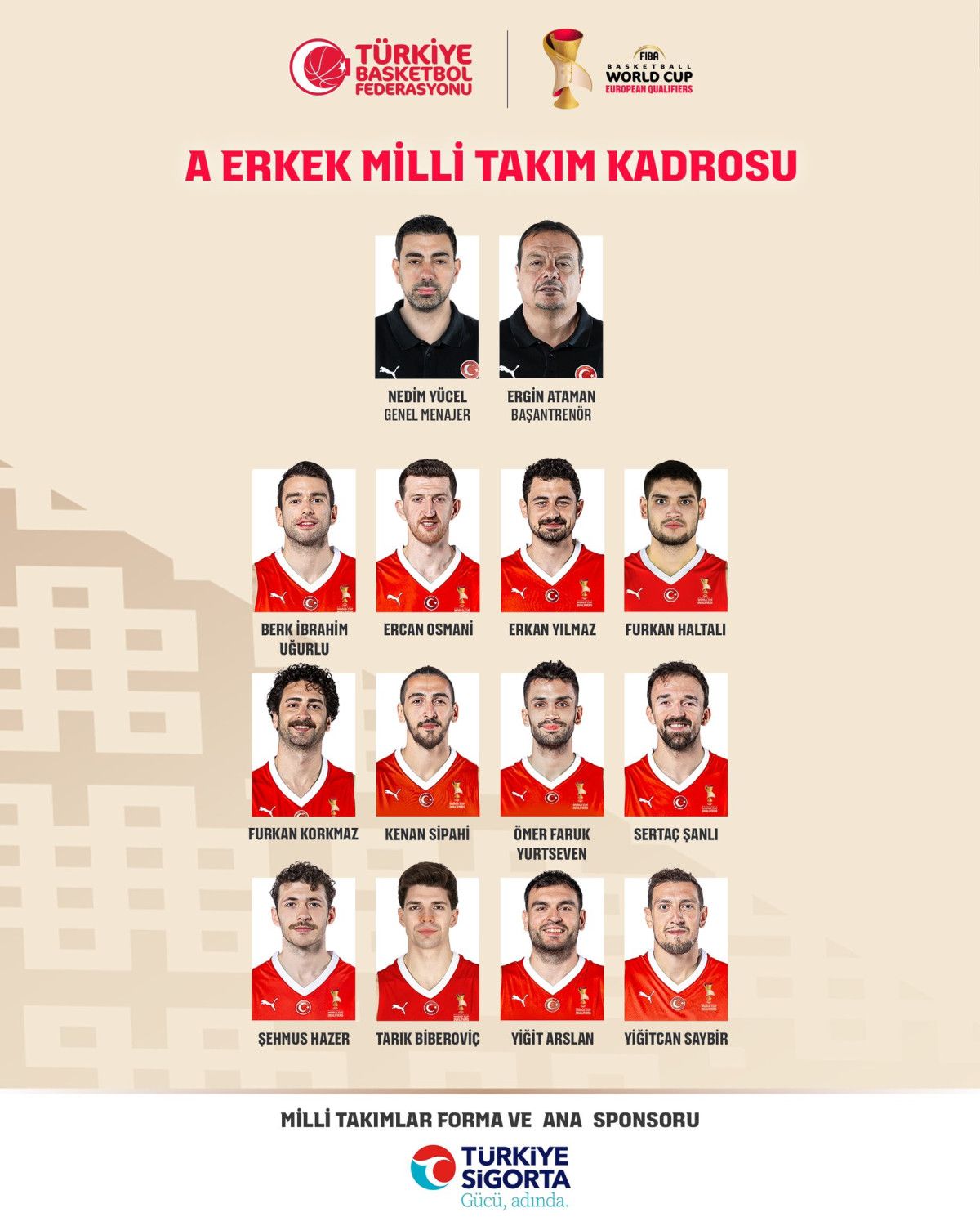 A Milli Erkek Basketbol Takımı'nın FIBA 2027 Dünya Kupası Elemeleri'nde bu akşam İsviçre ile oynayacağı müsabakanın 12 kişilik kadrosu açıklandı.