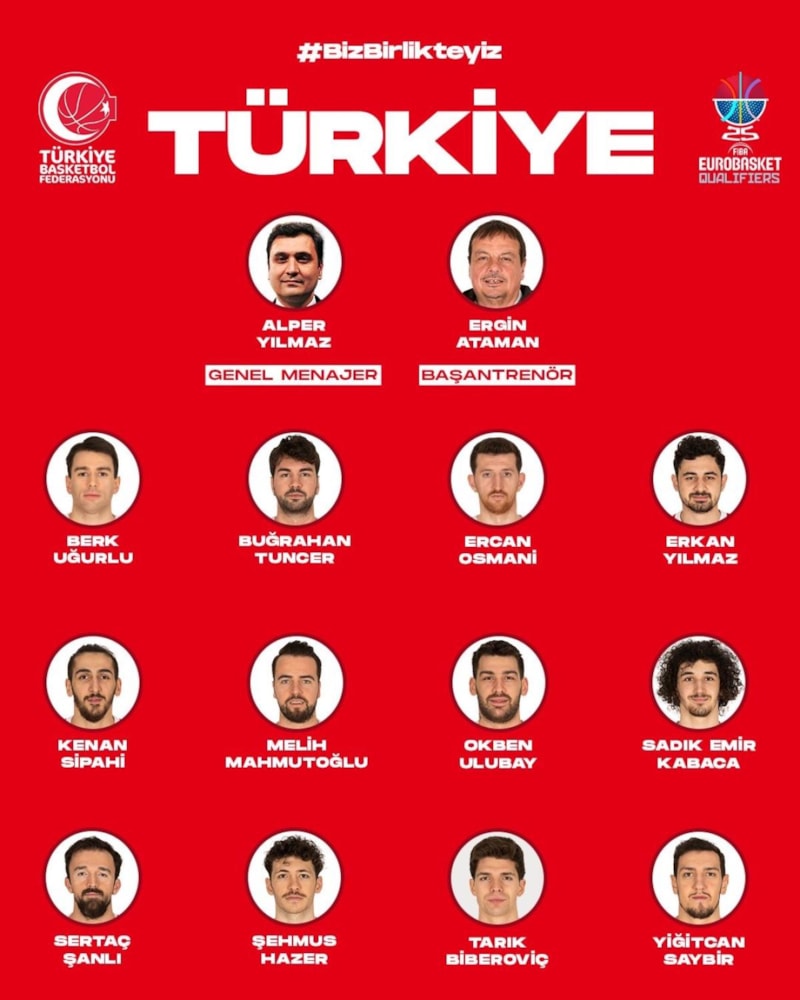 FIBA EuroBasket 2025 Elemeleri B Grubu ilk maçında bu akşam deplasmanda İtalya karşısında parkeye çıkacak olan A Milli Erkek Basketbol Takımı'nın 12 kişilik kadrosu açıklandı.