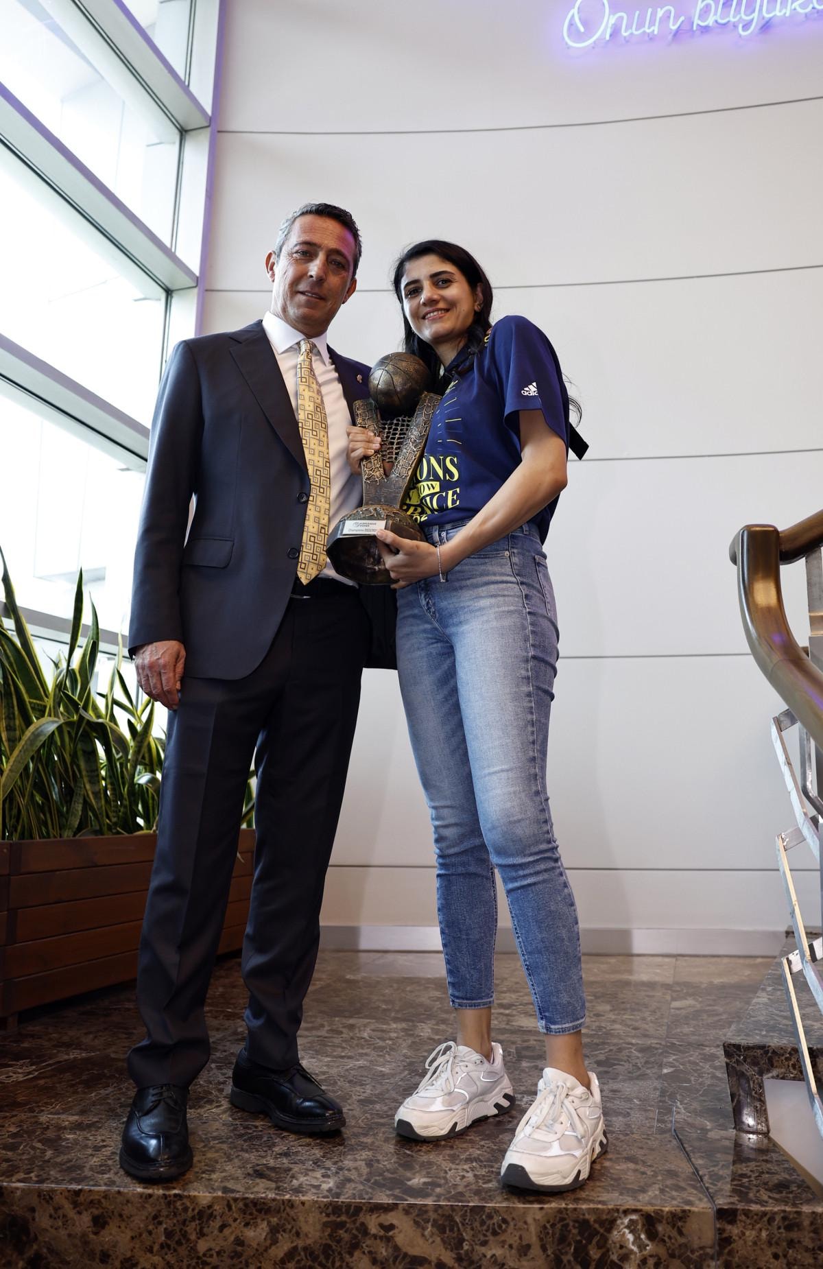 Kendinizle ne kadar gurur duysanız azdır sayenizde biz kendimizle gurur duyuyoruz. Dün gece telefonlarıma gelen mesajlar: ‘Allah sizden razı olsun. Bu yatırımları yaptınız, devam ettiniz. İyi takım kurdunuz. Takımdan Allah razı olsun.’ Bu mücadeleyi, uğraşları taçlandıran mesajlar bunlar. İnşallah önümüzdeki sezon da bundan daha kuvvetli takım kurar mıyız, bilemiyorum ama en az bu kadar kuvvetli bir takım kurabiliriz. Kemal bey ve hocamız önümüzdeki sezonun mühendisliğini zaten yapıyorlar. Hocamızla daha evvel iki şampiyonluğumuz vardı. Bu sezonun planlamasında yoktu. Valerie Garnier Fenerbahçe’yi ve Türkiye’yi çok iyi bilen bir hoca. Bir sürprizle karşılaştık. Geçen senenin hocasına da teşekkür etmek istiyorum. O da büyük başarılara imza attı ama sezonun başlamasına bir hafta kala özel sebeplerden dolayı devam edemeyeceğini söyledi ve imdadımıza hocamız Valerie Garnier yetişti. İyi ki de yetişmiş. Onunla da seneye bu başarının üstüne bir şey koyamıyoruz. Çünkü 4 kupa var. Cumhurbaşkanlığı Kupası artık yok. En azından bu seviyede kalmayı inşallah onun liderliğinde yapacağız.