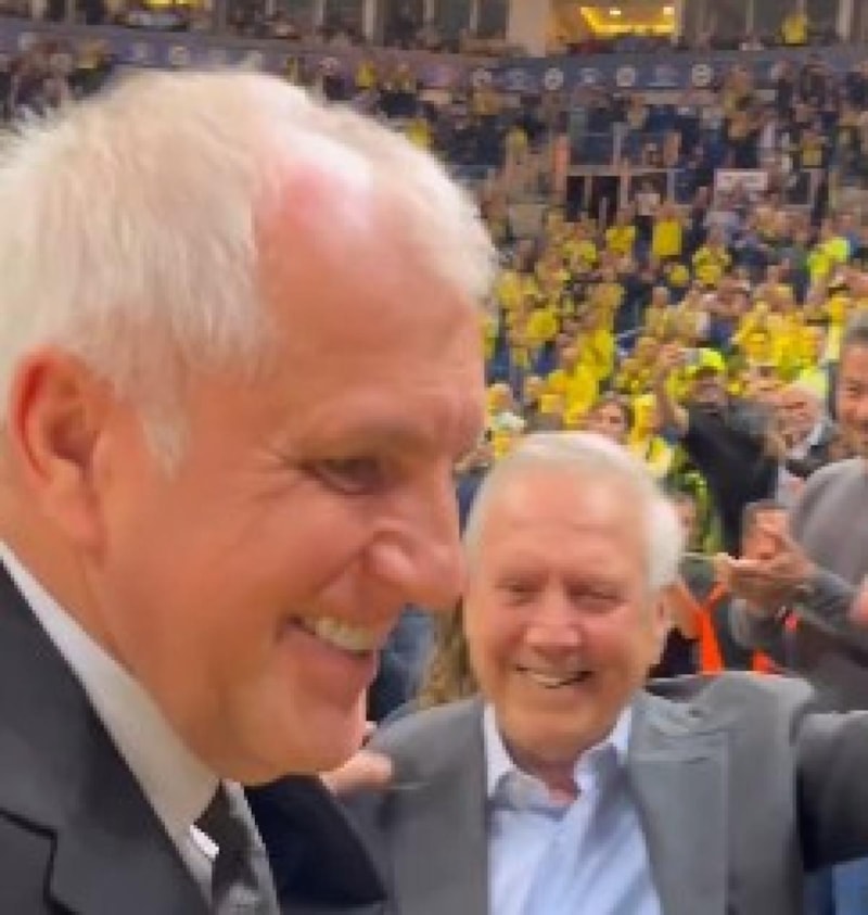 Fenerbahçe'nin eski başantrenörü ve şu anda Partizan’ı çalıştıran Zeljko Obradovic de eski dostu Aziz Yıldırım’ı görmeye geldi, ona sarılarak hasret giderdi.