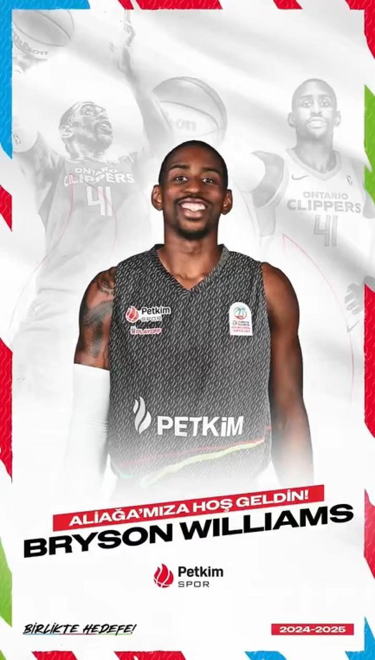 Türkiye Basketbol Süper Lig ekiplerinden İzmir temsilcisi Aliağa Petkimspor, 1998 doğumlu 2.03 m boyundaki ABD'li forvet Bryson Williams anlaştığını sosyal medya hesabından duyurdu.