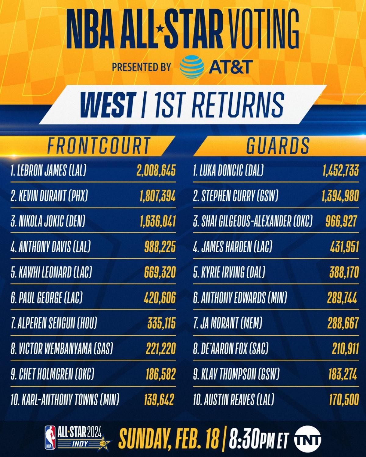 Amerikan Basketbol Ligi'nde (NBA) 18 Şubat'ta oynanacak 2023-2024 sezonu All-Star maçı için devam eden taraftar oylamasında ilk sonuçlar açıklandı.