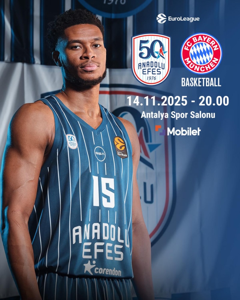 EuroLeague'in 11. haftasındaki Anadolu Efes - Bayern Münih müsabakasına 14 Kasım Cuma günü Antalya Spor Salonu ev sahipliği yapacak.