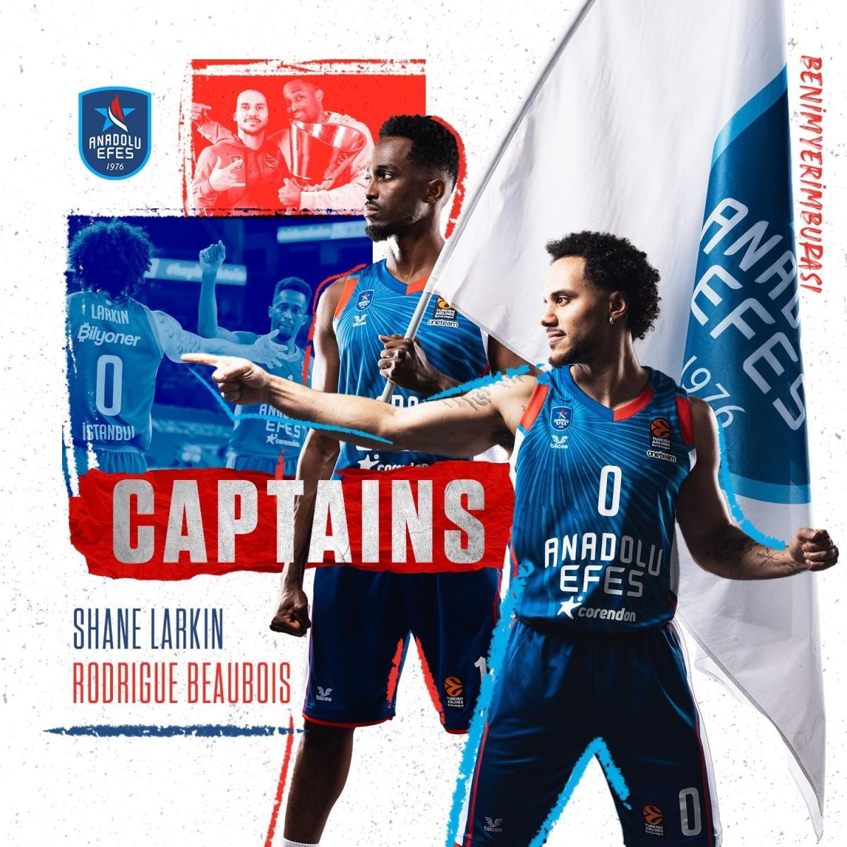 Anadolu Efes Erkek Basketbol Takımı'nda yeni kaptanlar Shane Larkin ile Rodrigue Beaubois oldu.