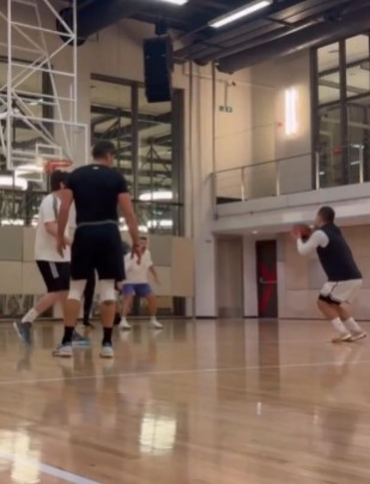Eski milli futbolcu, sadece futbolda değil, basketbolda da yeteneğini kanıtlar nitelikte bir performans sergiledi.