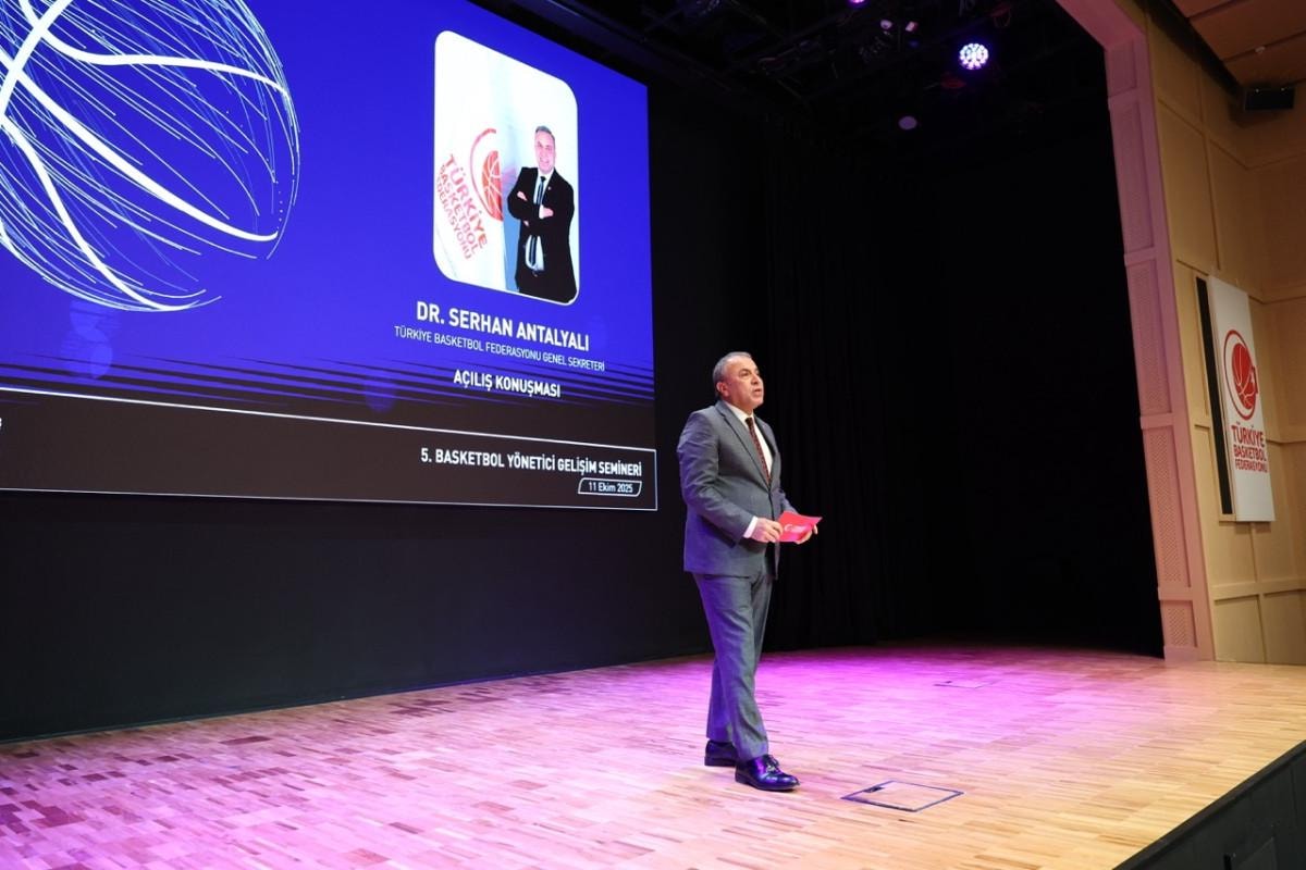 TBF Genel Sekreteri Serhan Antalyalı'nın açılış konuşmasıyla başlayan seminerde alanında uzman isimler, basketbol yöneticiliği ve spor yönetimi konularında paylaşımlarda bulundu.