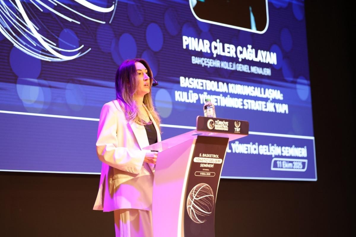 Basketbol yöneticilerinin profesyonel gelişimine katkı sağlamayı ve sektörde sürdürülebilir yönetim anlayışını güçlendirmeyi amaçlayan seminerde Bahçeşehir Koleji Genel Menajeri Pınar Çiler Çağlayan basketbolda kurumsallaşma, kulüp yönetiminde stratejik yapı, TBF Yönetim Kurulu Üyesi ve Spor İstanbul Genel Müdürü Bilge Donuk spor yönetiminde güncel yaklaşımlar, TBF Sportif Direktörü Alper Tunca Yılmaz genel menajerlerin sorumluluk alanları, Infront Türkiye Genel Müdürü Ender Uslu spor organizasyonlarında sponsorluk yapıları, TBF Medya İletişim Müdürü Yusuf Demirtaş basketbol yöneticisinin medya ve iletişim stratejileri, Fenerbahçe Doğuş Yelken ve Türkiye Modern Pentatlon Federasyonu Spor Psikoloğu Berceste Şeber spor yöneticiliğinde zihinsel dayanıklılık ve baş etme stratejileri konularında sunumlar yaptı.