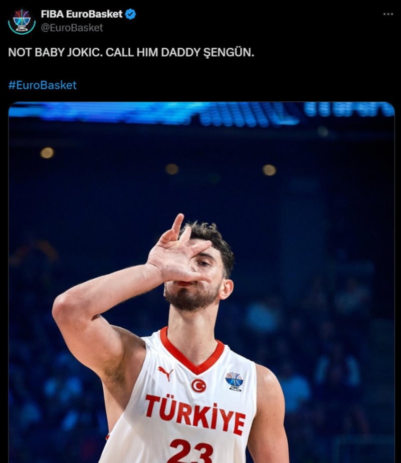 FIBA EuroBasket, ABD merkezli X şirketinin sosyal medya platformunda hesabında "Bebek Jokic değil. Ona 'Baba Şengün' deyin." ifadesini kullandı.
