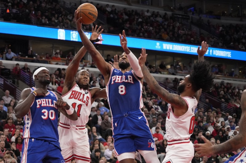 Maçın son 2 dakika 45 saniyesine 102-99 geride giren Chicago Bulls, Jalen Smith'in Joel Embiid üzerinden yaptığı smaçla 10-0'lık bir seri yakalayarak Philadelphia 76ers karşısında galibiyete uzandı.