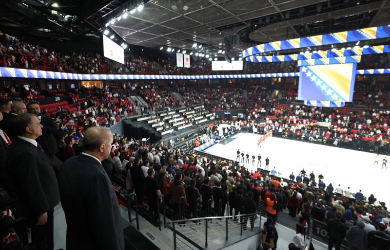 Cumhurbaşkanı Recep Tayyip Erdoğan, A Milli Basketbol Takımı’nın Bosna Hersek ile oynadığı karşılaşmayı salonda takip edip karşılaşma sonrası Milli oyuncuları soyunma odasında tebrik etti.