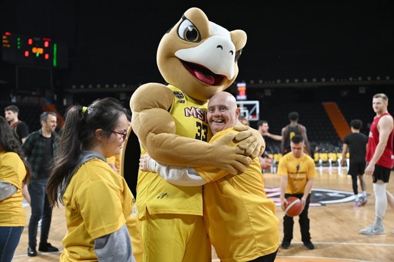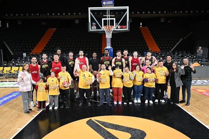 Mersin Spor'un antrenmanına misafir olan down sendromlu çocuklar, basketbolcularla tanışıp sohbet etti. Ailelerin de katıldığı etkinlikte basketbol oynayan çocuklar, keyifli anlar yaşadı.