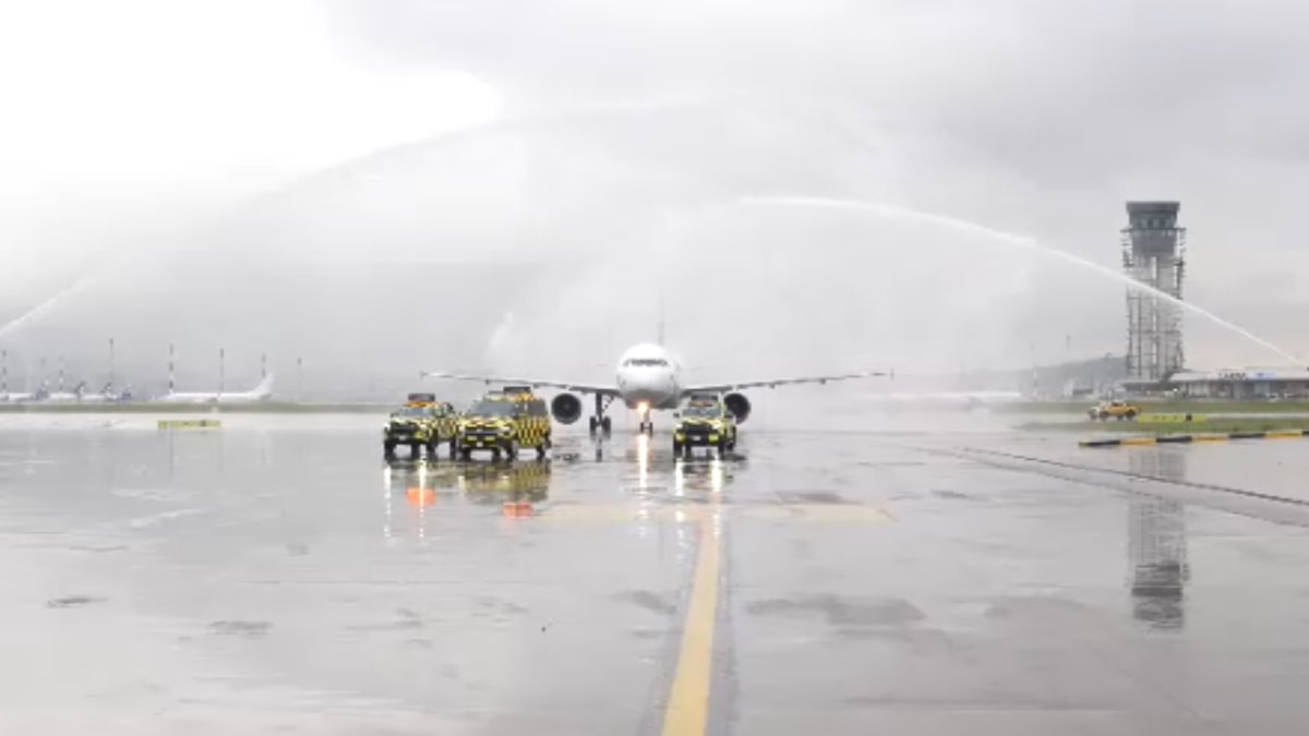 Şampiyonlara özel bir karşılama düzenleyen Havalimanı İşletme ve Havacılık Endüstrileri A.Ş. (HEAŞ), uçağın pistten park alanına ilerleyişi sırasında su takı seremonisi gerçekleştirdi.