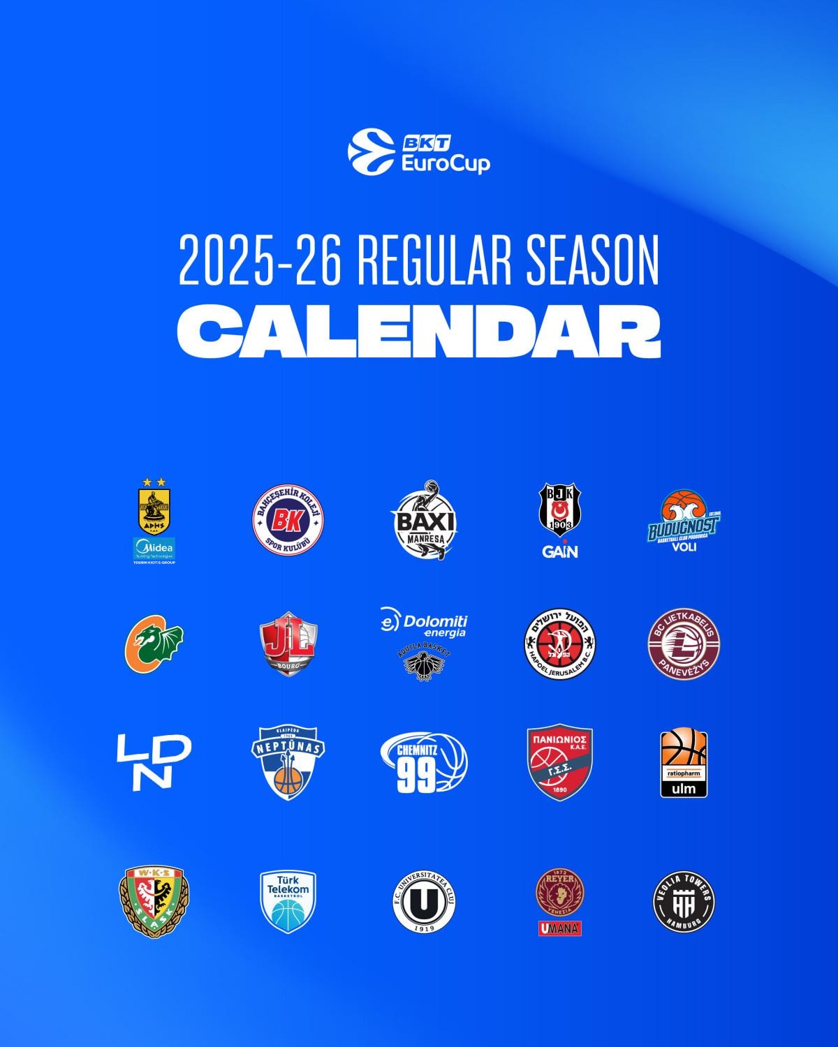 Avrupa basketbolunun 2 numaralı organizasyonu EuroCup'ta 2025-2026 sezon fikstürü belli oldu.