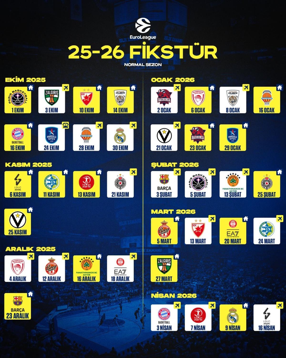Avrupa basketbolunun 1 numaralı organizasyonu EuroLeague'de 2025-2026 sezonu fikstürü belli oldu.