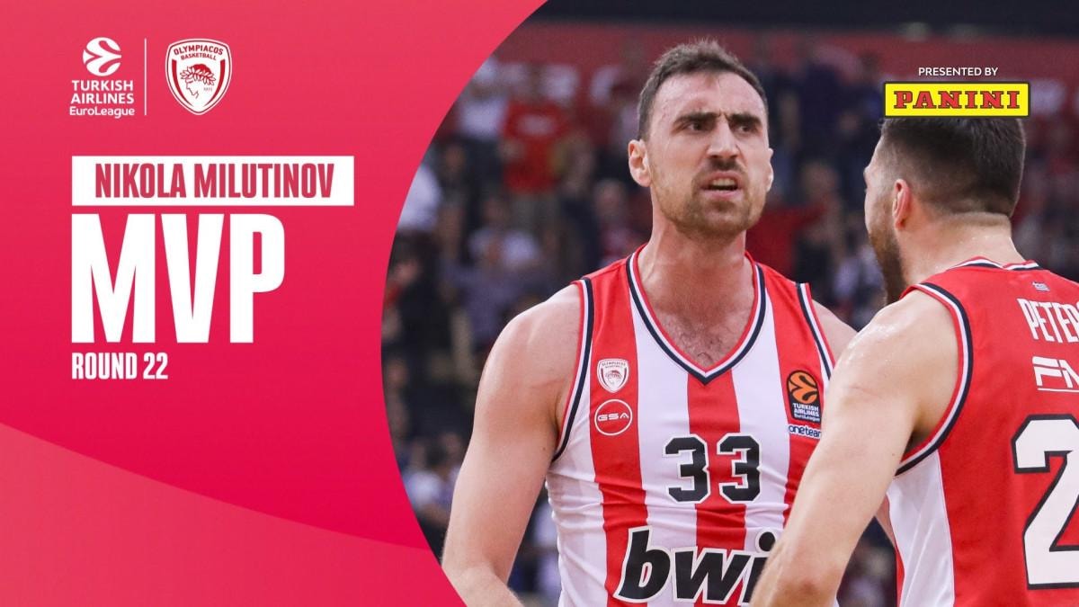 EuroLeague'in resmi internet sitesinden yapılan açıklamada, Olympiakos’un evinde Maccabi Tel Aviv'i 89-72'lik skorla mağlup ettiği müsabakada iyi performans sergileyen Sırp oyuncusu Nikola Milutinov'un haftanın MVP'si seçildiği belirtildi.