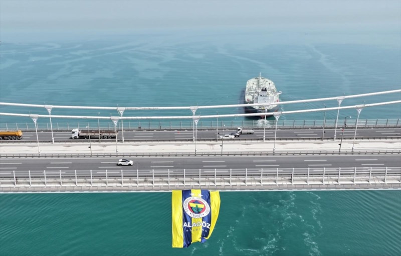 Ayrıca bayrağın köprüye asılma anı, sarı-lacivertlilerin sosyal medya hesabından "Gururla" açıklamasıyla paylaşıldı.
