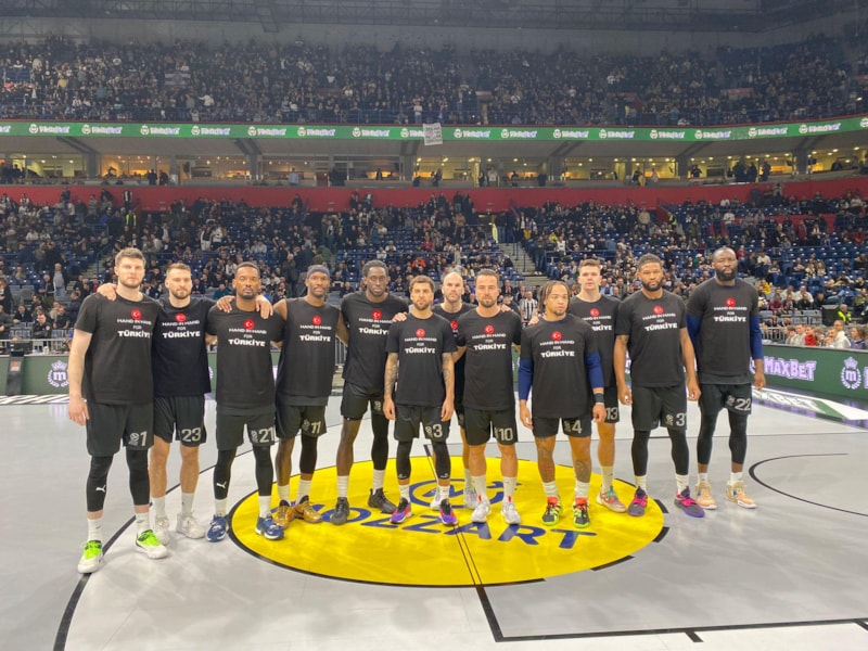‘Türkiye İçin El Ele; Beraber Güçlüyüz’ tişörtleriyle parkeye çıkan Fenerbahçe, karşılaşmada ‘Siyah’ forma ile mücadele etti.