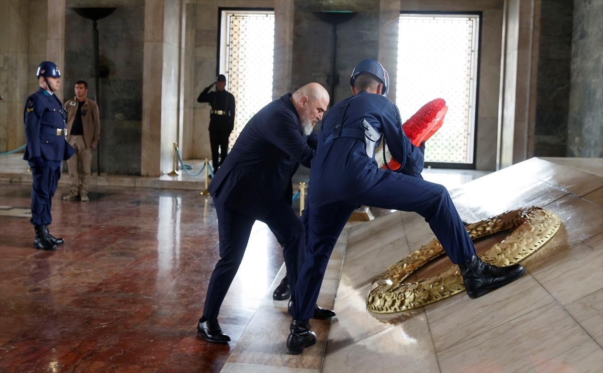 Heyet, Gazi Mustafa Kemal Atatürk'ün mozolesine çelenk bıraktıktan sonra saygı duruşunda bulundu.