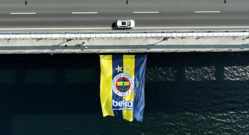 Fenerbahçe Erkek Basketbol Takımı'nın dev bayrakları 1915 Çanakkale ve Osmangazi Köprüsü'nde dalgalandı.