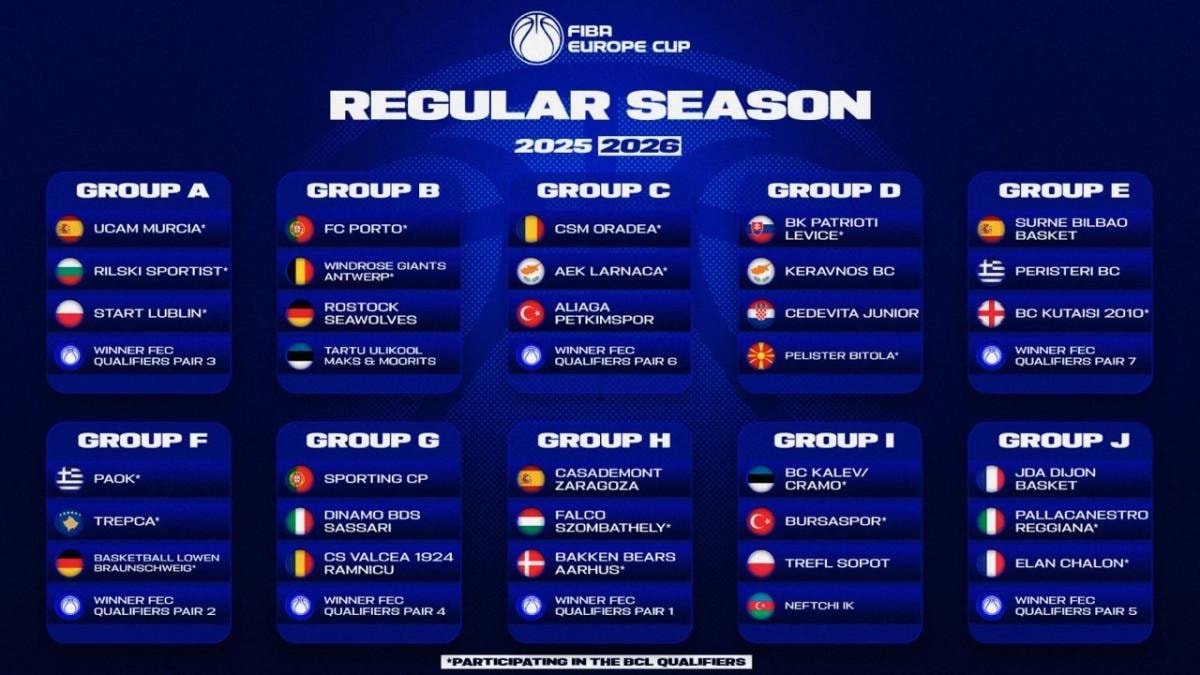 Türkiye'den Aliağa Petkimspor, C Grubu'nda yer aldı. Bursaspor ise Basketbol Şampiyonlar Ligi (BCL) elemelerinden gelmesi durumunda I Grubu’nda yer alacak.