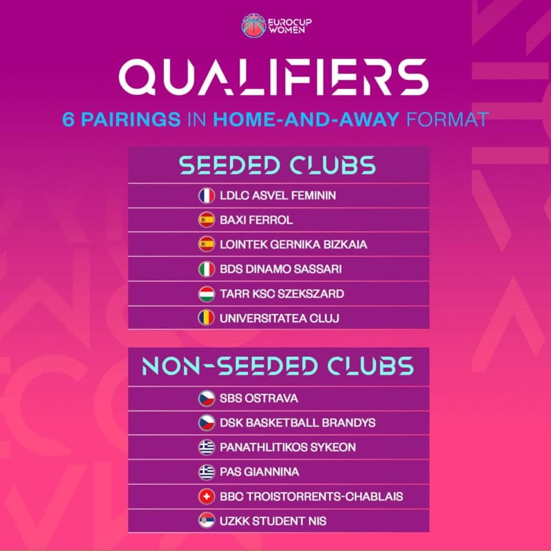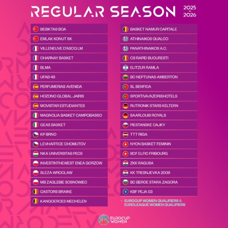Beşiktaş, Emlak Konut (Türkiye), Villeneuve d'Ascq LM, Charnay Basket, BLMA, UFAB 49 (Fransa), Perfumerias Avenida, Hozono Global Jairis, Movistar Estudiantes (İspanya), Magnolia Basket Campobasso, GEAS Basket (İtalya), KP Brno, Levhartice Chomutov (Çekya), NKA Universitas Pecs (Macaristan), InvestInTheWest Enea Gorzow, Sleza Wroclaw, MB Zaglebie Sosnowiec (Polonya), Castors Braine, Kangoeroes Mechelen, Basket Namur Capitale (Belçika), Athinaikos Qualco, Panathinaikos A.C. (Yunanistan), CS Rapid Bucuresti (Romanya), Elitzur Ramla (İsrail), BC Neptunas-Amberton (Litvanya), SL Benfica, Sportiva/AzorisHotels (Portekiz), Rutronik Stars Keltern, Saarlouis Royals (Almanya), Piestanske Cajky (Slovakya), TTT Riga (Letonya), Nyon Basket Feminin, BCF Elfic Fribourg (İsviçre), ZKK Ragusa, KK Tresnjevka 2009 (Hırvatistan), BC Beroe Stara Zagora (Bulgaristan), KBF Peja 03 (Kosova)