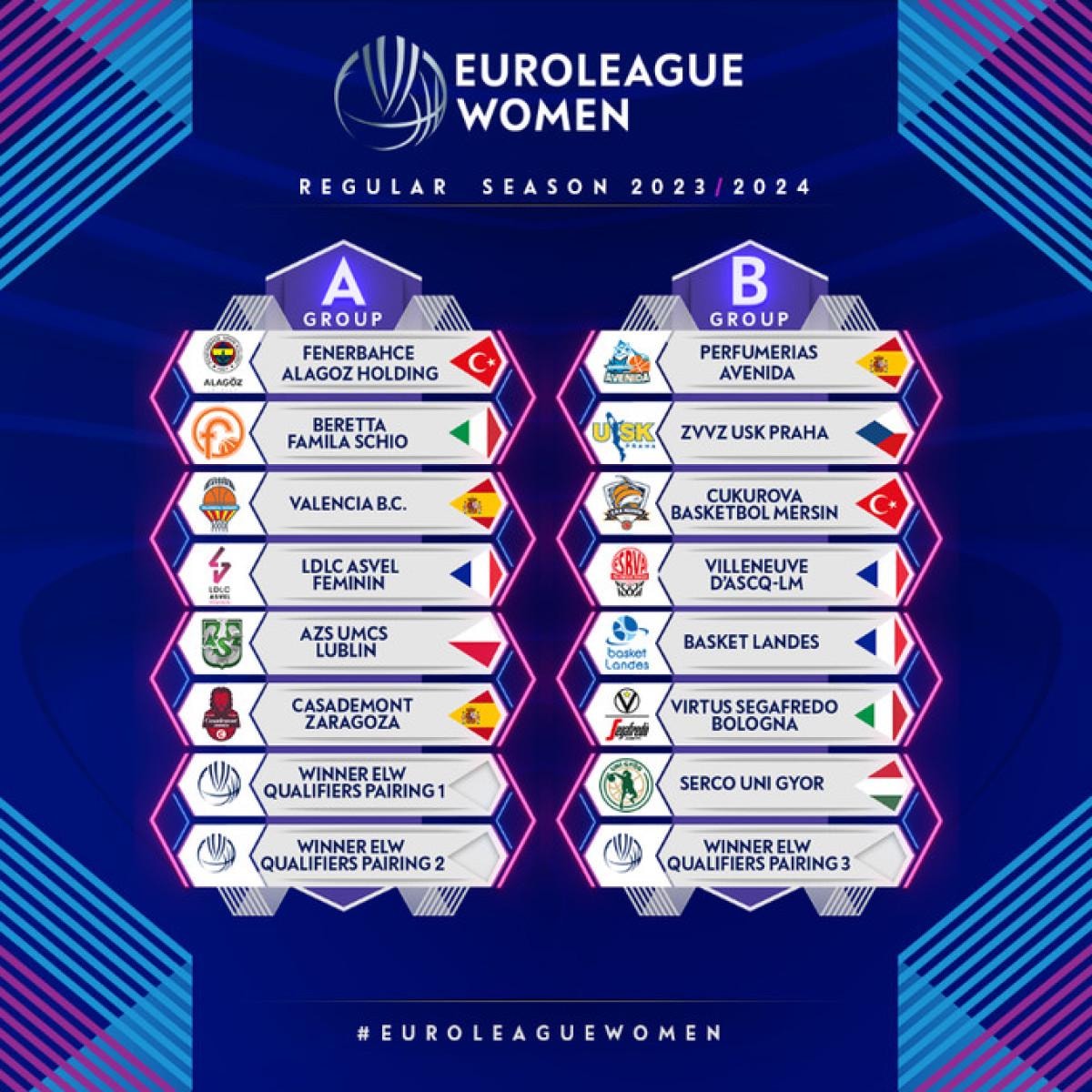 A Grubu: Fenerbahçe, Beretta Famila Schio (İtalya), Casademont Zaragoza, Valencia (İspanya), LDLC ASVEL (Fransa), AZS UMCS Lublin (Polonya), Elemelerden gelecek 2 takım