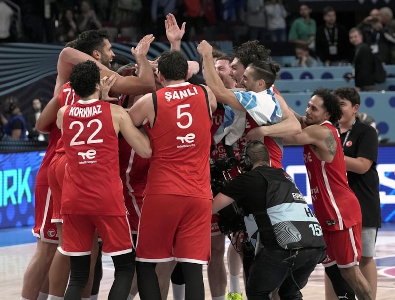 A Milli Takım'da oyuncular ve teknik ekip, maçın ardından büyük bir sevinç yaşadı. Milli basketbolcular, EuroBasket 2025'te finale yükselmenin sevincini yakınları ve Türk taraftarlarla kutladı.