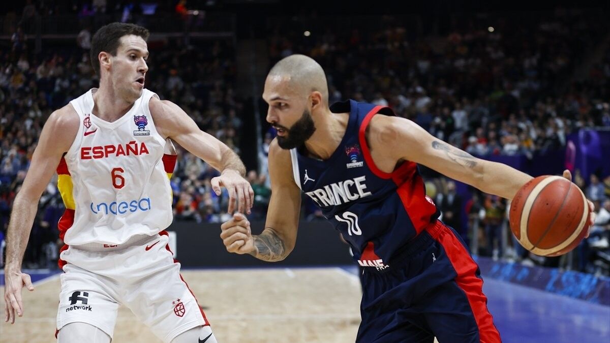 İlk çeyreği 23-14 önde geçen İspanya, devre arasına 2,5 dakika kala farkı 21 sayıya (47-26) çıkardı. Fransa kalan bölümde 11-0'lık seri yakalayınca soyunma odasına İspanya'nın 47-37'lik üstünlüğüyle gidildi.