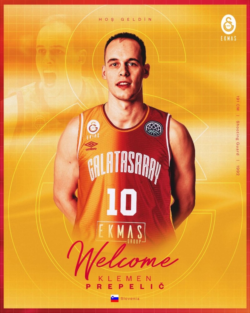 Galatasaray Erkek Basketbol Takımı, Slovenyalı oyun kurucu Klemen Prepelic'i kadrosuna kattığını duyurdu.