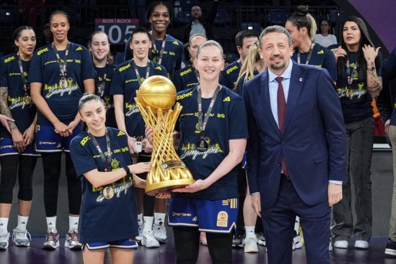 Fenerbahçe oyuncularına madalyalarının takdim edilmesinin ardından Alperi Onar ve Emma Meesseman'a kupayı, TBF Başkanı Hidayet Türkoğlu verdi.