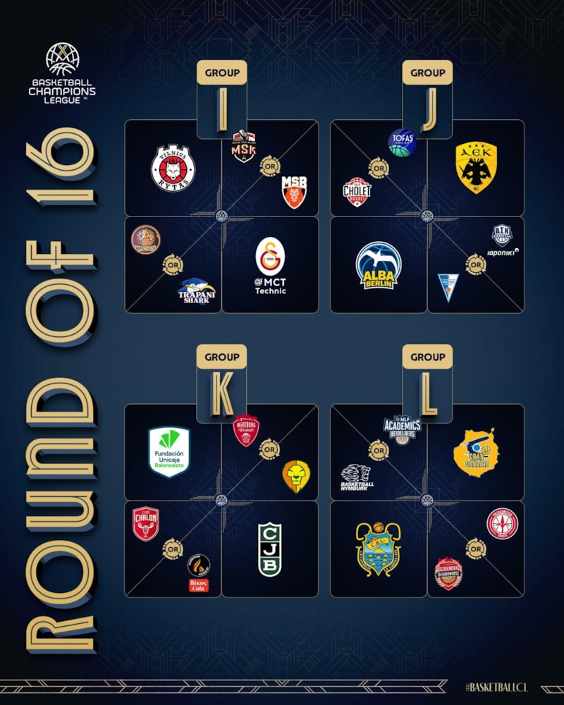 Galatasaray Erkek Basketbol Takımı, Şampiyonlar Ligi son 16 turunda Rytas Vilnius ile eşleşirken, diğer 2 rakibi ise play-in maçlarının ardından belli olacak.