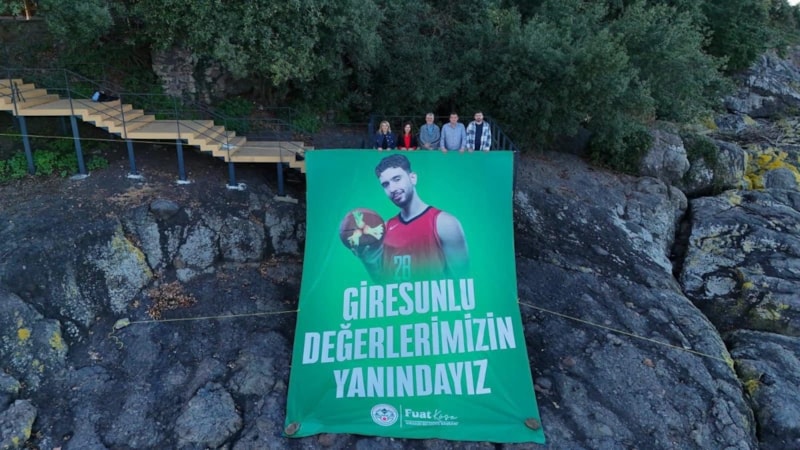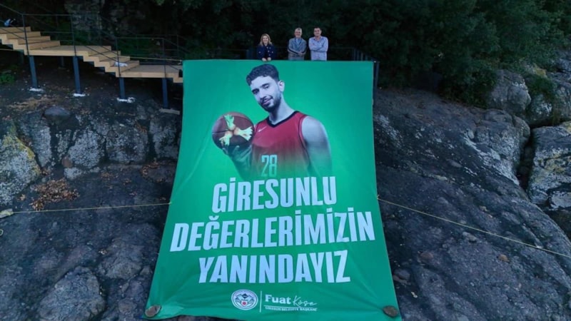 Giresun Belediye Başkanı Fuat Köse ve milli basketbolcunun babası Kemal Şengün’ün de katıldığı etkinlikte poster, Karadeniz Sahil Yolu’ndan da görülebilecek şekilde adaya yerleştirildi.
