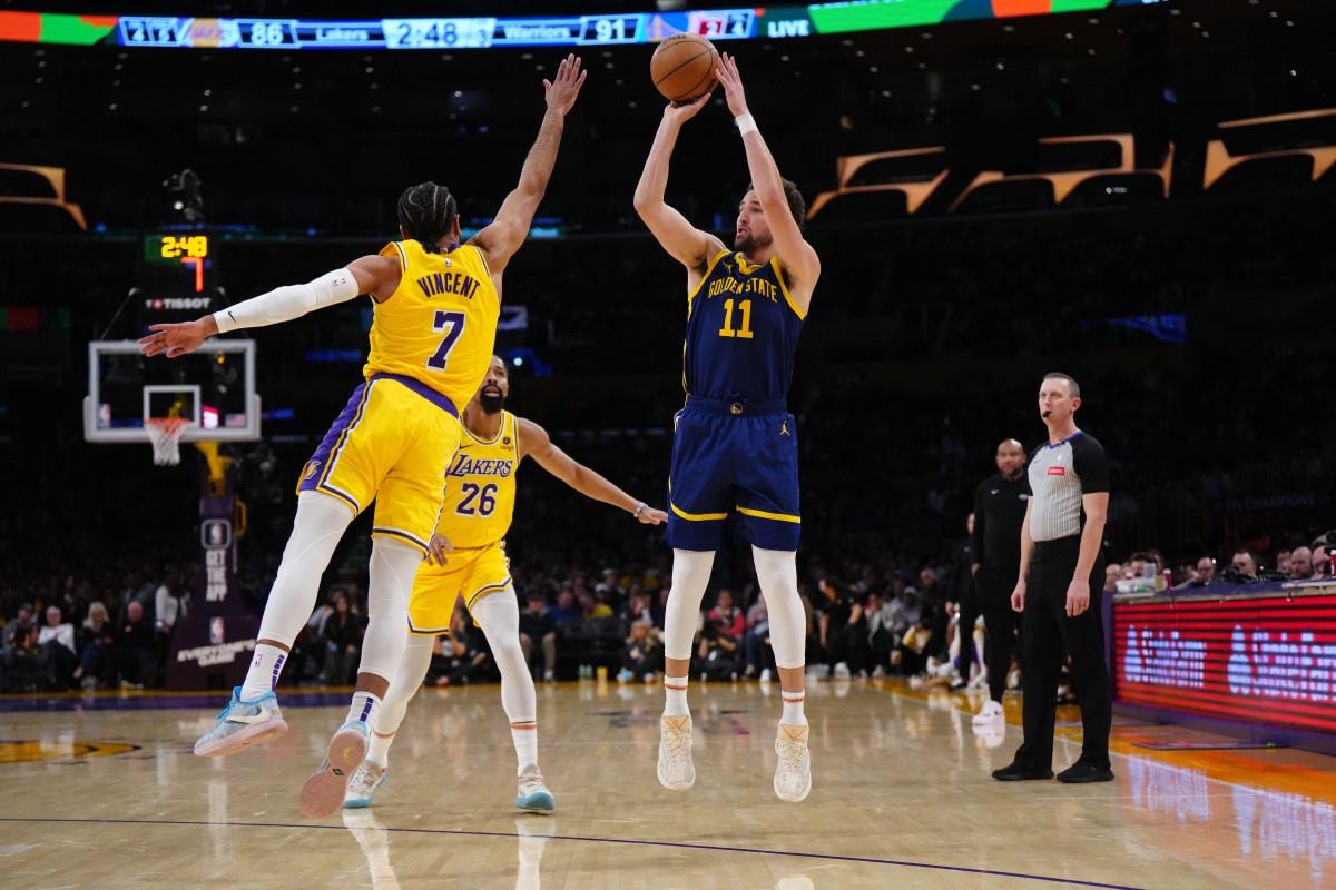 Rakibi Los Angeles Lakers'ı deplasmanda 14 sayı farkla 134-120'lik skorla mağlup eden Golden State Warriors'ta Klay Thompson 27 sayı, Stephen Curry 23 sayı, 8 asist, 7 ribaunt, Andrew Wiggins 17 sayı, Draymond Green 15 sayı, 10 asistle galibiyete katkıda bulundu.
