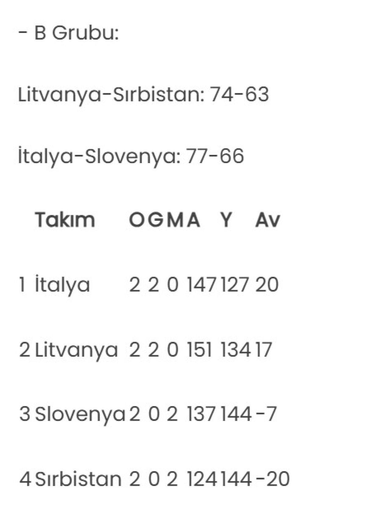 A Grubu'nda liderliği kesinleşen Fransa, B Grubu'nda ise Litvanya ve İtalya, 2'de 2 yaparak son maçlar öncesi çeyrek finale kalmayı garantiledi.