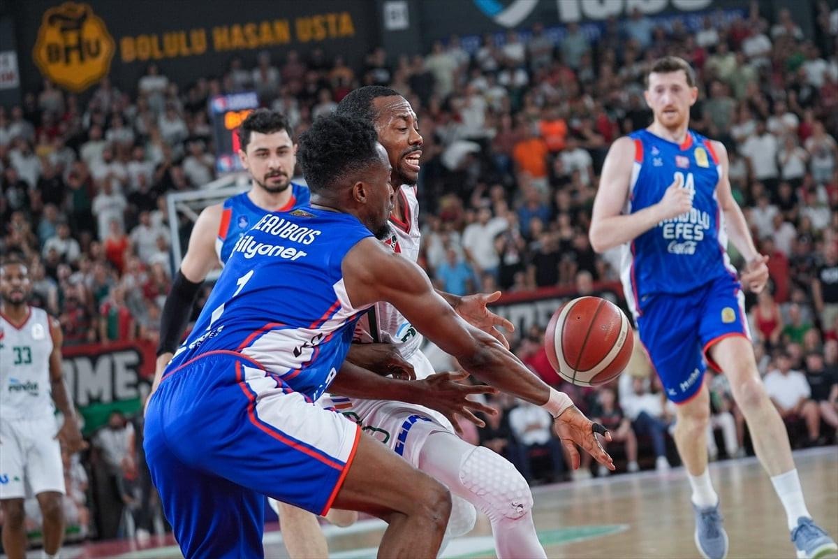 Basketbol Süper Ligi play-off yarı final serisinin üçüncü maçında deplasmanda Karşıyaka'yı 97-90 yenen Anadolu Efes seriyi 3-0 kazanarak, finale çıkan ilk takım oldu.