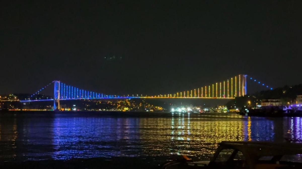 Dün akşam da 15 Temmuz Şehitler, Fatih Sultan Mehmet ve Yavuz Sultan Selim köprüleri de sarı-lacivertli renklere büründü.