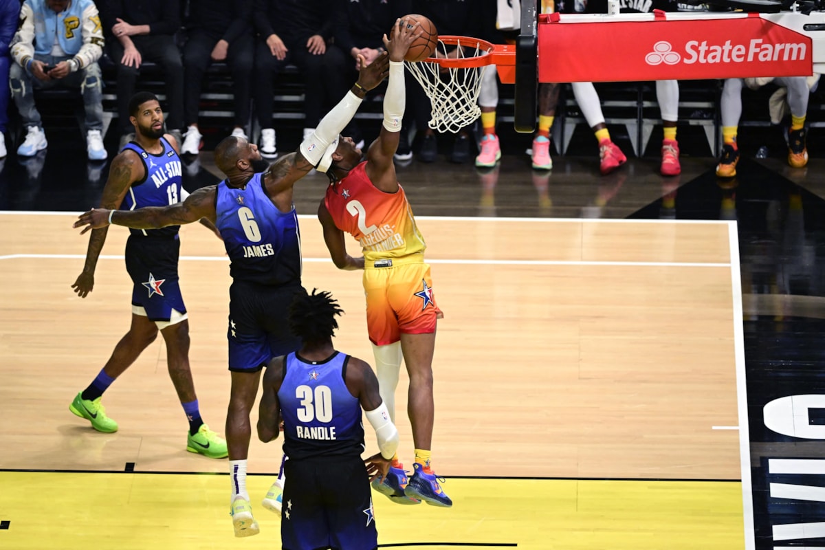 Öte yandan Los Angeles Lakers forması giyen ve kariyerinde 19. kez All-Star seçilen LeBron James maçta talihsiz bir an yaşadı. Pascal Siakam'ı arkadan bloklamak isteyen LeBron, rakibine müdahele etmek isterken elini potaya çarptı ve sakatlandı. Tecrübeli yıldız sonrasında maça devam edemedi.