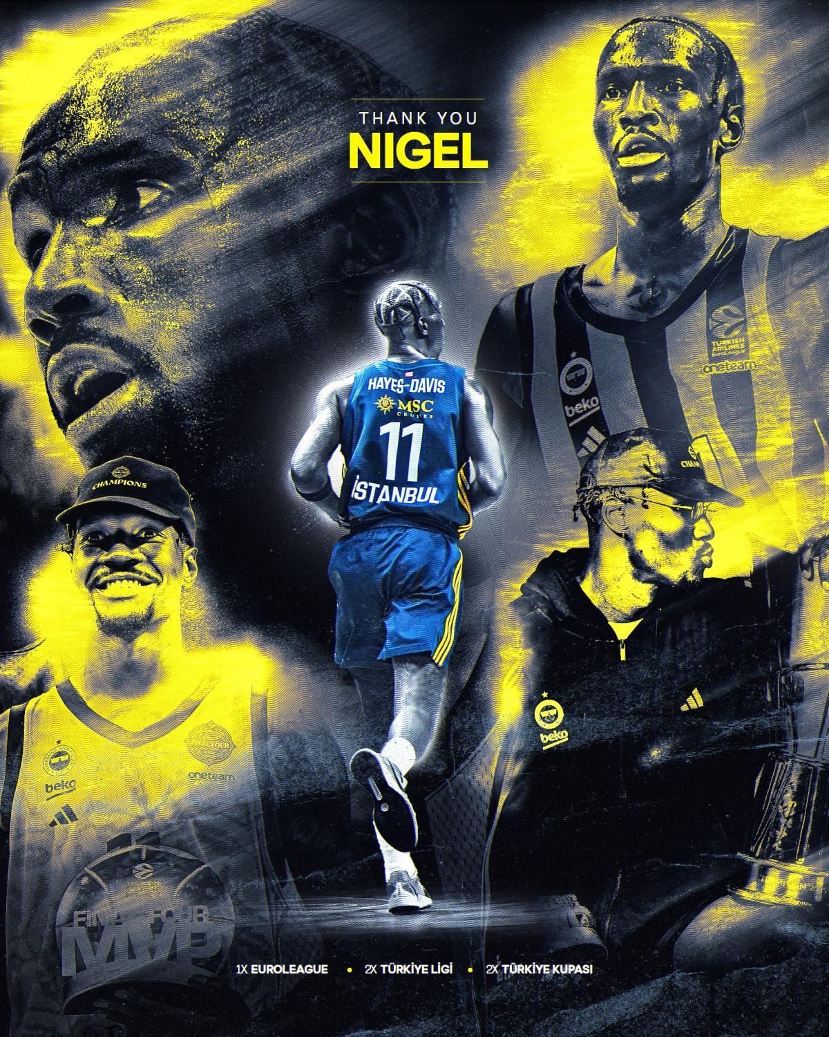 2022-2023 sezonundan bu yana formamızı giyen ve bu süreçte elde edilen tarihi başarılarda en önemli pay sahibi isimlerden biri olan Nigel Hayes-Davis, sözleşmesindeki çıkış opsiyonunu kullanarak kariyerine NBA'de devam etme kararı almıştır.