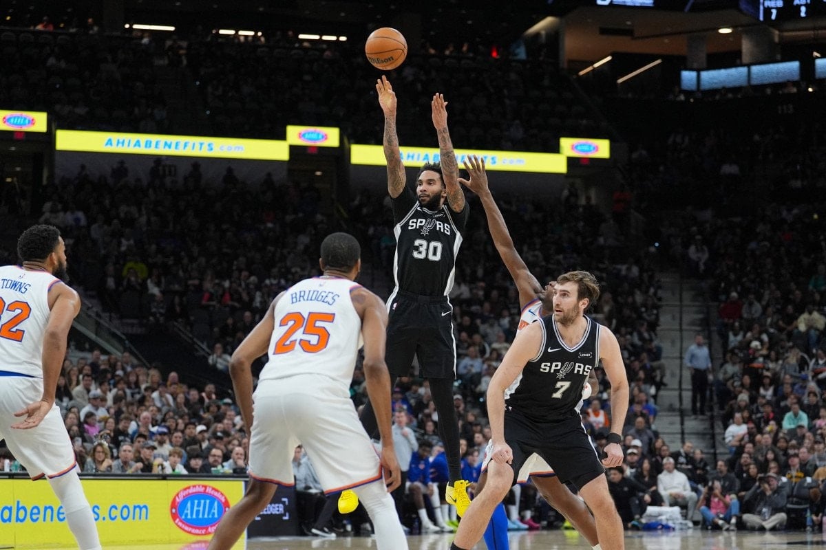San Antonio Spurs konuk ettiği New York Knicks'i 134-132 mağlup ederken Spurs'ta Julian Champagnie, 11 üçlük ile kendi adına NBA kariyer rekoru olan 36 sayıya ulaştı.
