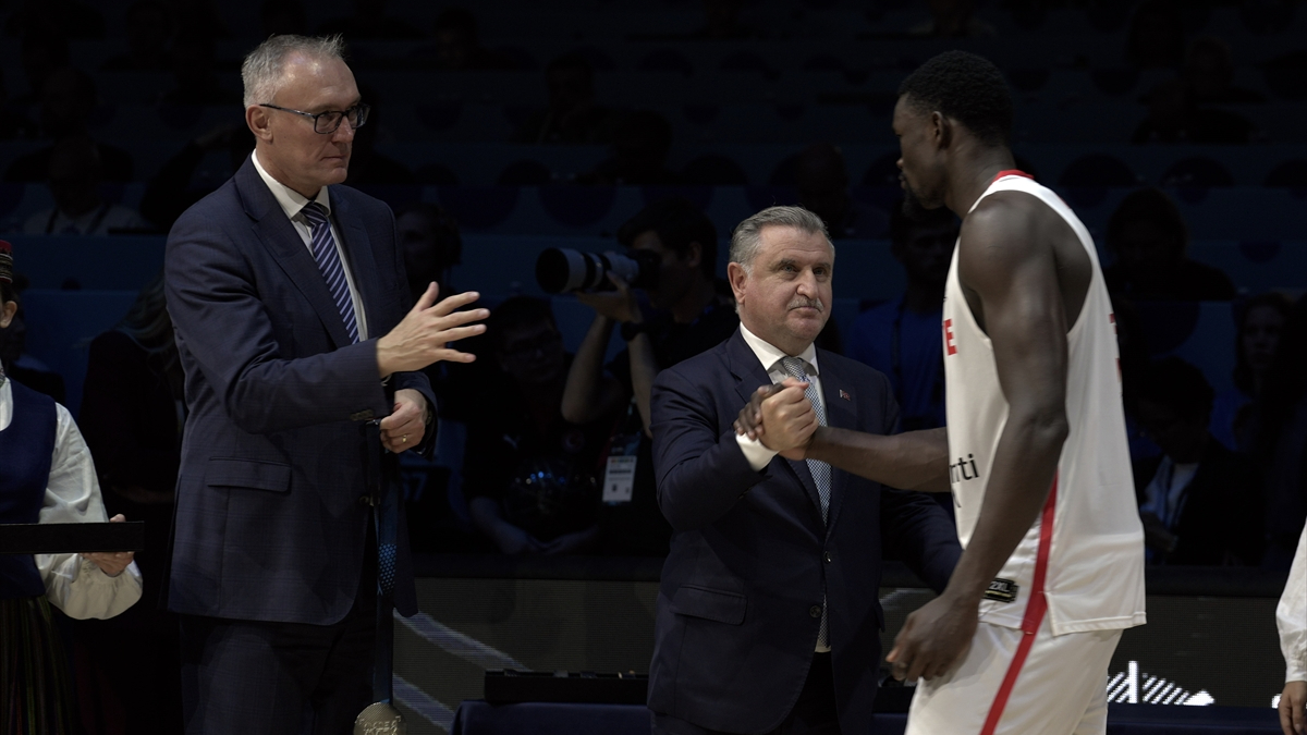 Türk sporuna büyük yatırımlar yapan sayın Cumhurbaşkanımıza destekleri için teşekkür ediyoruz. Avrupa'nın ve dünyanın en önemli basketbol merkezlerinden birini basketbol camiamıza kazandırdı. Basketbol Gelişim Merkezi'nde yeni 12 dev adamlar çıkacak, önümüzdeki turnuvalarda da iyi işler yapacaklarına inanıyorum. İlk günden itibaren 'Madalya alacağız' diyen Ergin Ataman'a sporcularımıza, federasyon başkanına, yöneticilerine, dualarıyla arkamızda duran milletimize teşekkür ediyoruz. Sporcularımızla gurur duyuyoruz. Burada olmadı ama diğer turnuvalarda olacağına inanıyoruz. Türk basketbolu büyük hedeflere yürüyor. Bundan da gurur duyuyoruz. Şampiyonluk önemli bir sonuç, bu takım onun için savaşmaya devam edecek. Milletimizi gururlandırdıkları için hepsiyle gurur duyuyoruz.