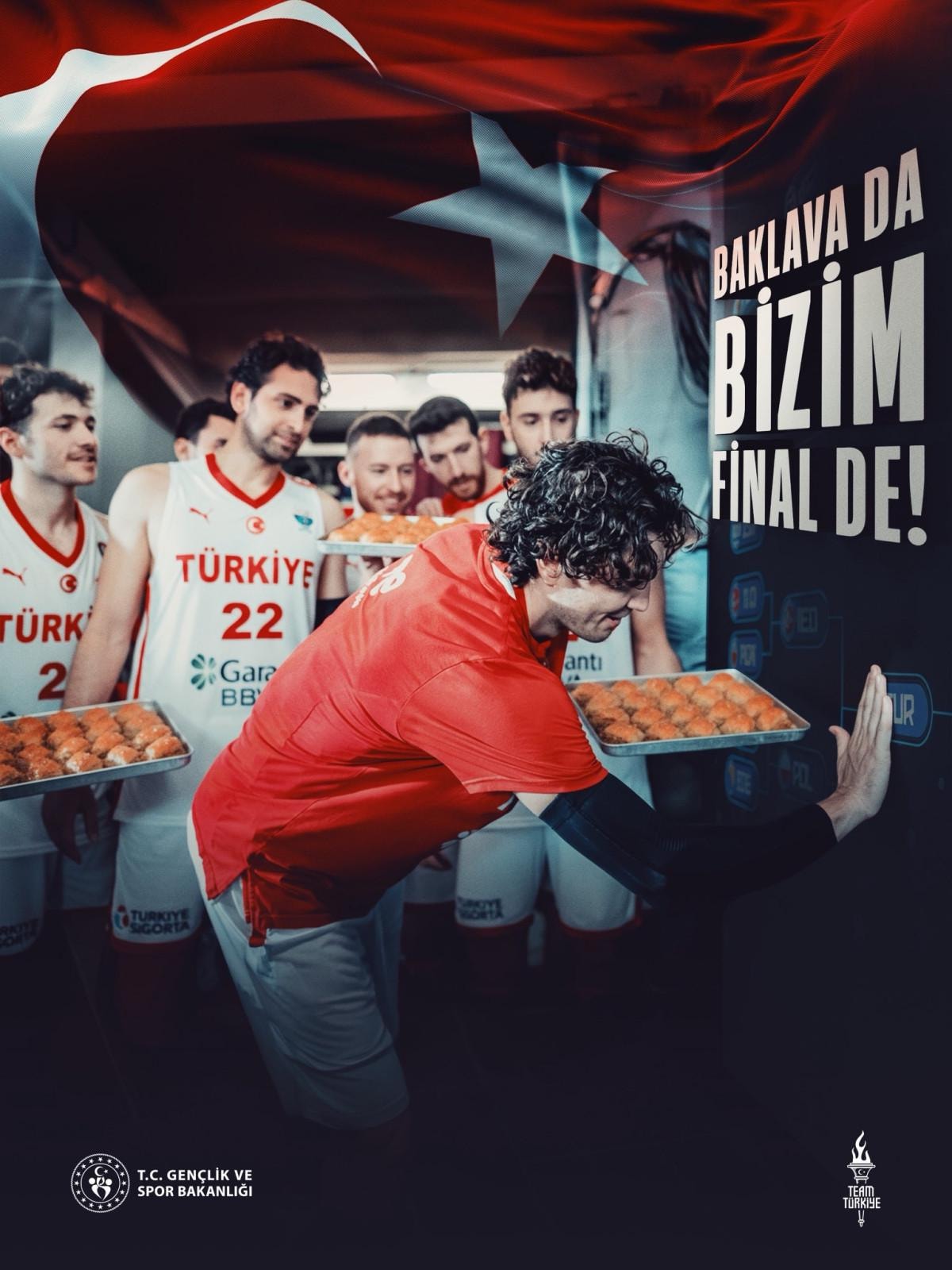 Bak, galibiyet sonrası oyuncuların ellerinde baklava olan bir görsel paylaştı. Yayınlanan fotoğrafta ise "Baklava da bizim final de" notu dikkatleri çekti.