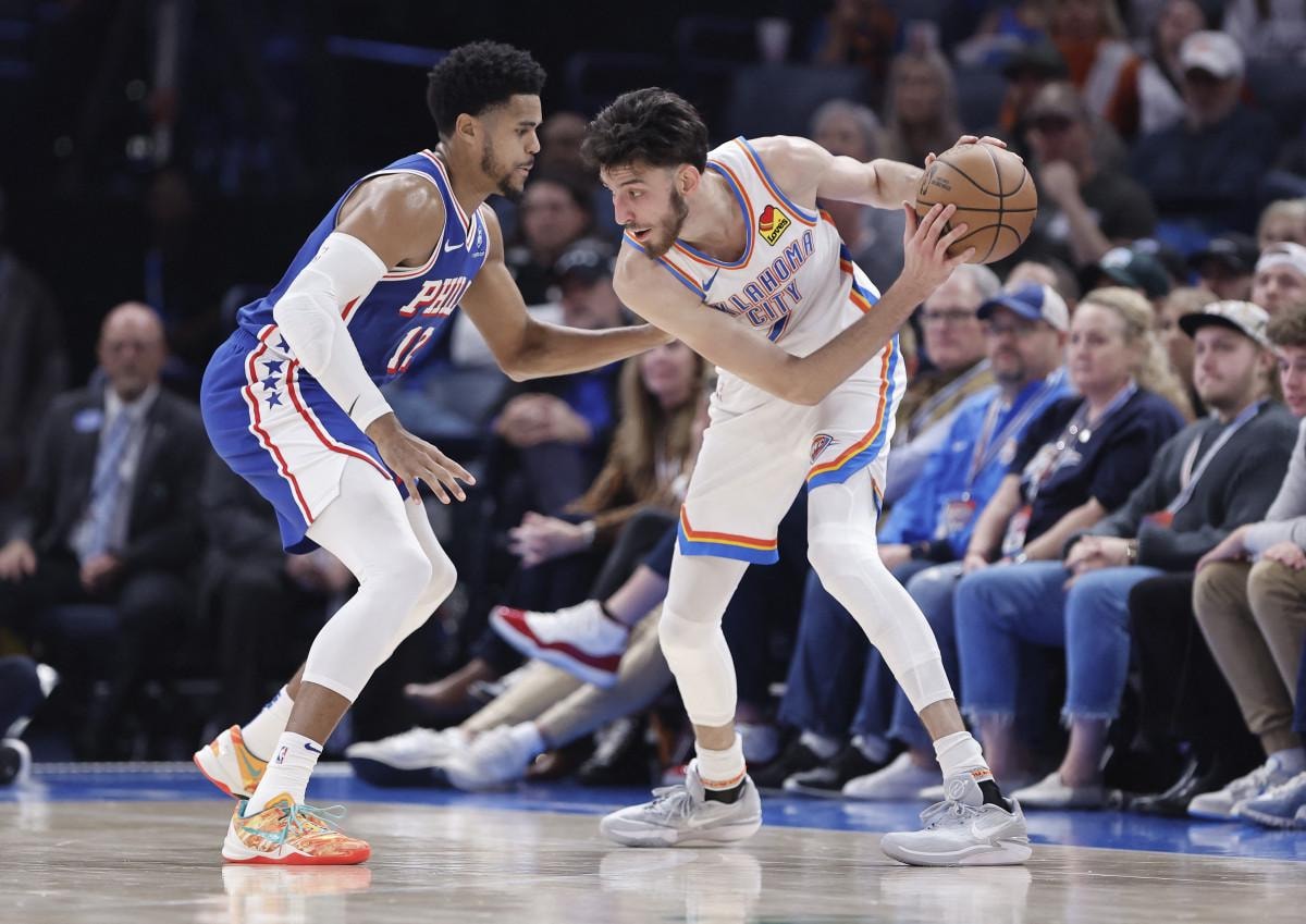 Philadelphia 76ers, Joel Embiid'in 35 sayı, 11 ribaunt ve 9 asistle "double-double" yaptığı maçta Oklahoma City Thunder'ı 127-123 yenerek rakibinin 6 maçlık galibiyet serisini sonlandırdı. 76ers'ta Tyrese Maxey 28, Tobias Harris ise 16 sayıyla galibiyete katkı verdi.