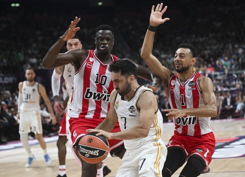 Real Madrid, EuroLeague Final Four'da karşılaştığı Olympiakos'u yenerek finalde Panathinaikos'un rakibi oldu.